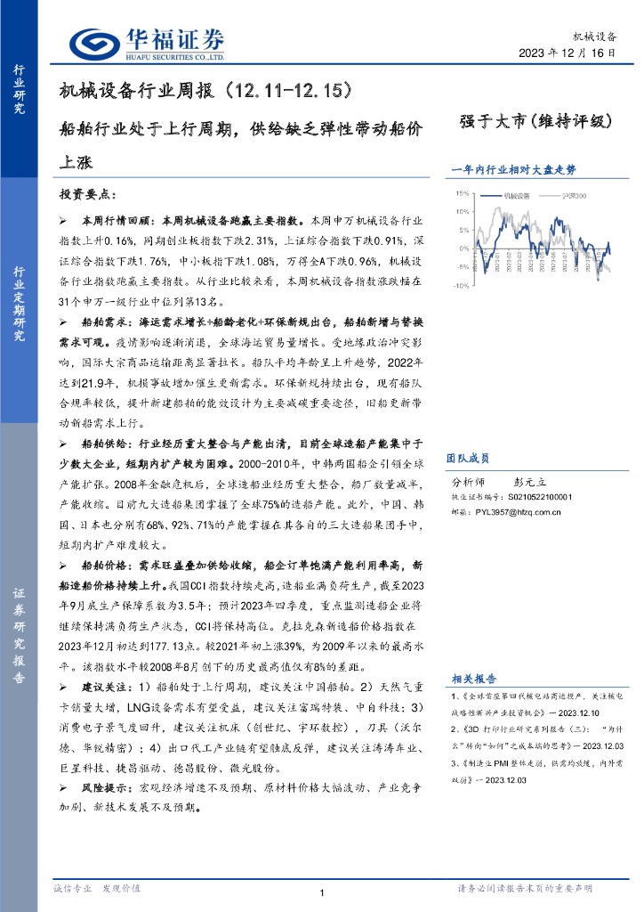 华福证券:机械设备行业周报:船舶行业处于上行周期,供给缺乏弹性带动船价上涨.pdf