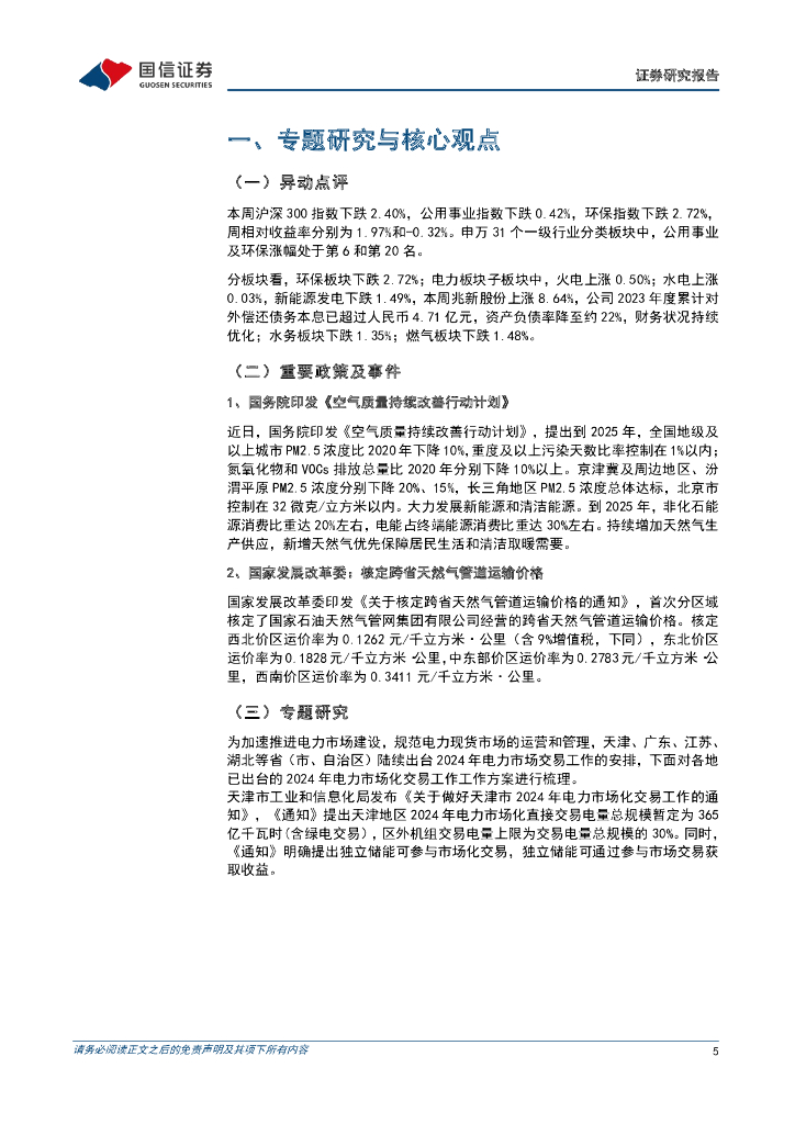 国信证券:公用环保202312第2期:《空气质量持续改善行动计划》出台,各地2024年电力市场交易方案梳理.pdf