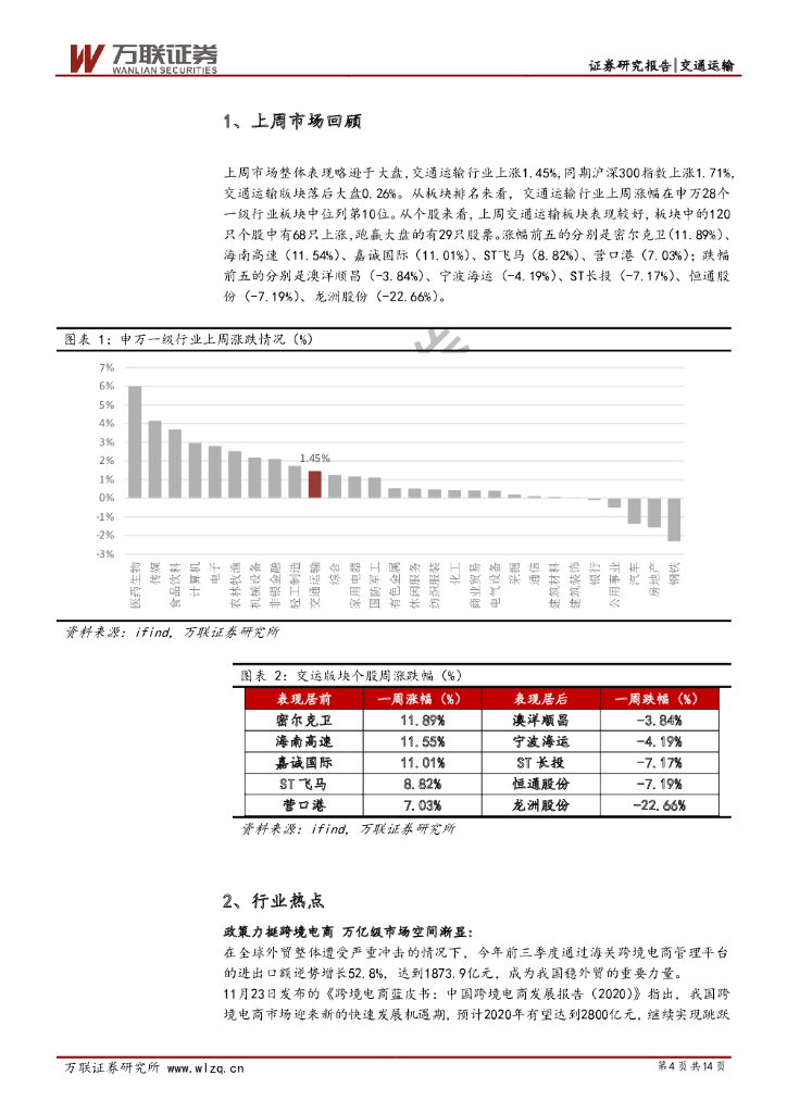 万联证券:交通运输行业周观点报告:市场政策双利好,跨境电商带动物流发展.pdf