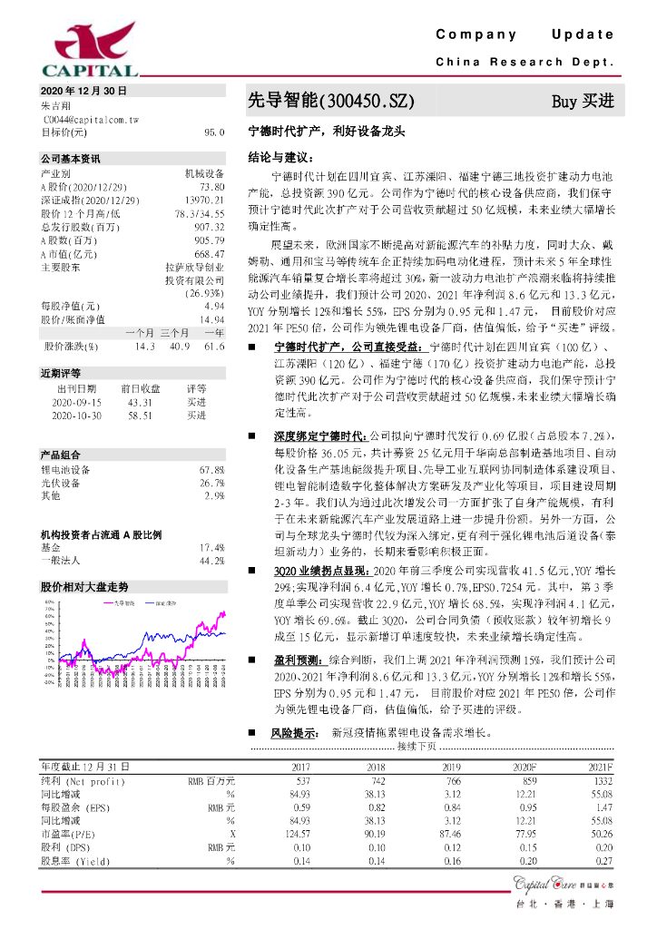 群益证券:先导智能(300450)-宁德时代扩产,利好设备龙头.pdf