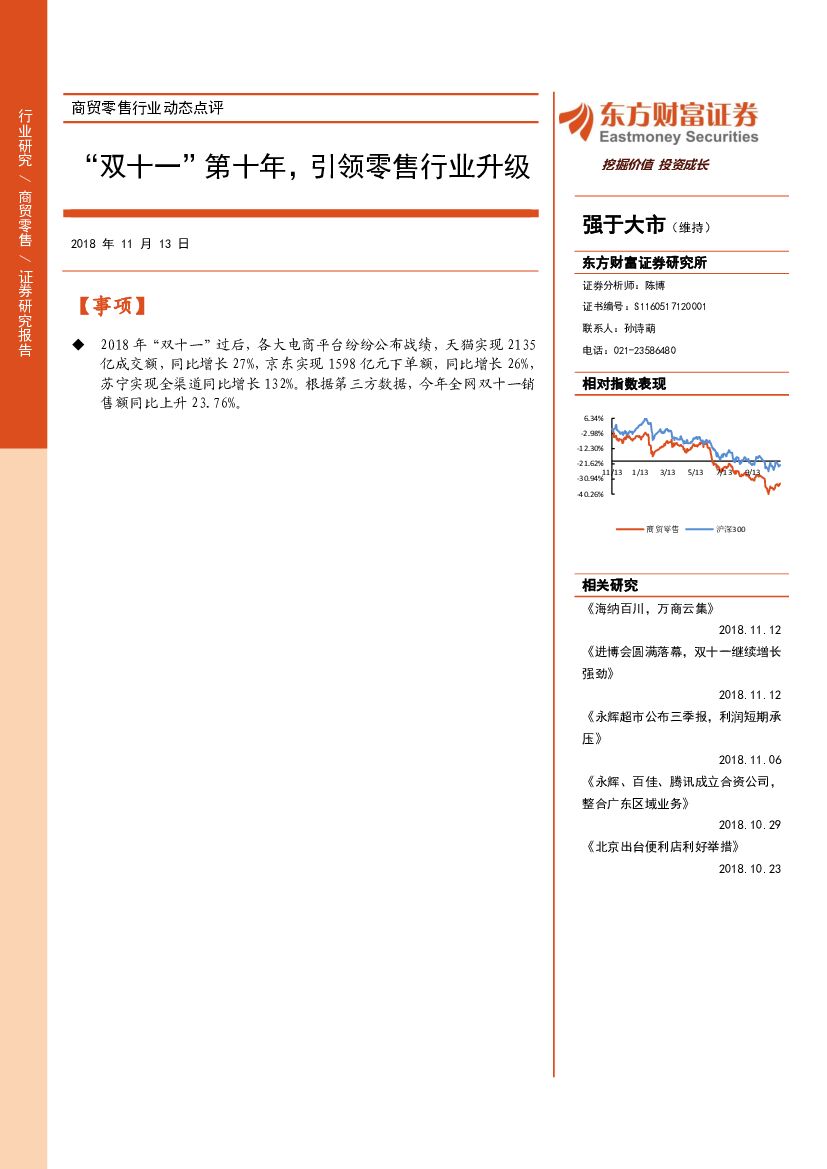 东方财富证券:商贸零售行业动态点评:“双十一”第十年,引领零售行业升级.pdf