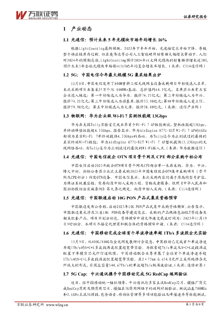 万联证券:通信行业周观点:多个运营商集采招标公告中标结果.pdf