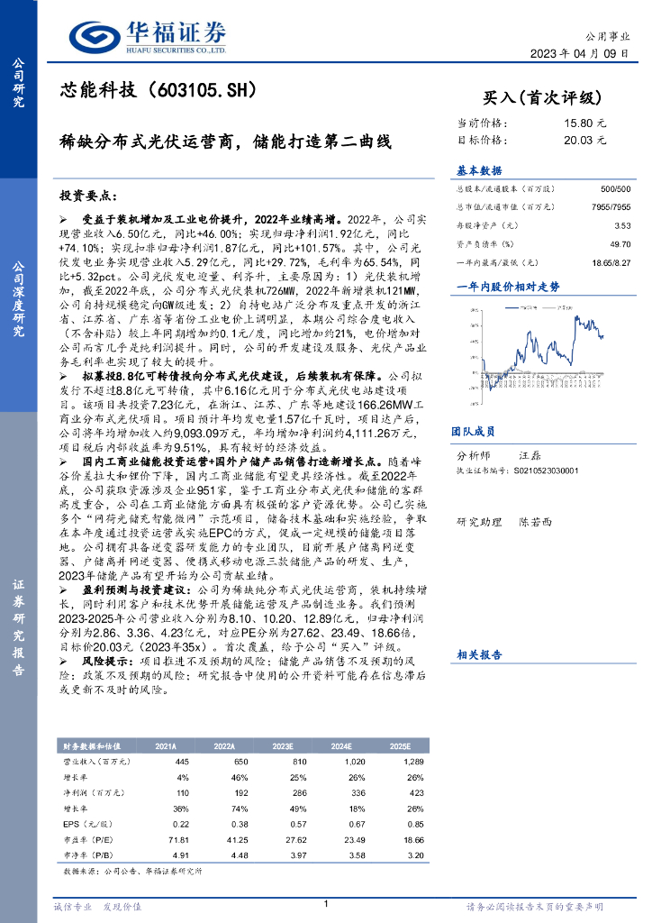 华福证券:芯能科技(603105)-稀缺分布式光伏运营商,储能打造第二曲线.pdf