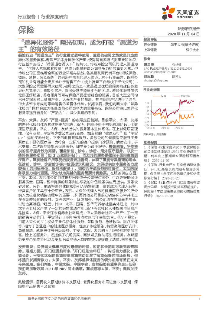 天风证券:保险行业深度研究:“差异化服务”曙光初现,成为打破“渠道为王”的有效路径.pdf