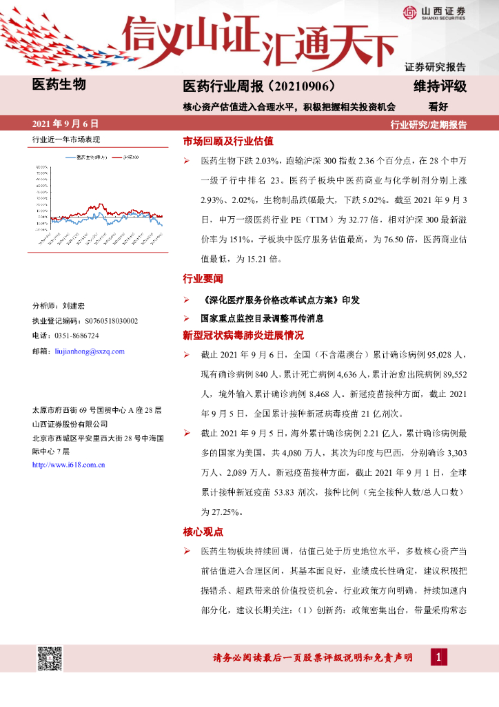山西证券:医药行业周报:核心资产估值进入合理水平,积极把握相关投资机会.pdf