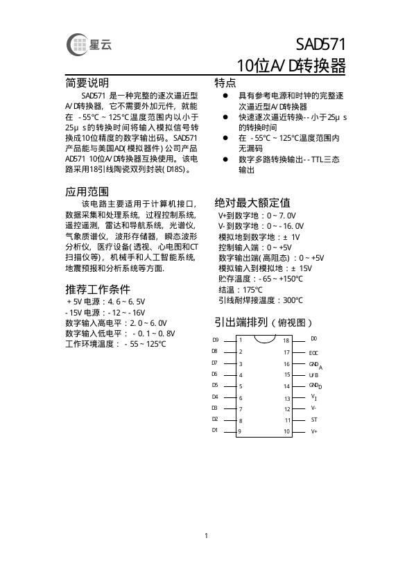 星云 SAD571 10位A/D转换器 数据手册.pdf