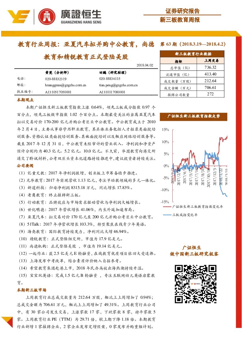 广证恒生证券研究所:教育行业周报:亚夏汽车拟并购中公教育,尚德教育和精锐教育正式登陆美股.pdf