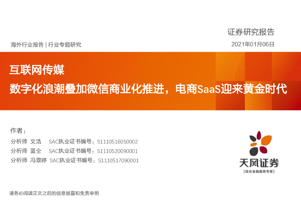 天风证券:互联网传媒行业:数字化浪潮叠加微信商业化推进,电商SaaS迎来黄金时代.pdf