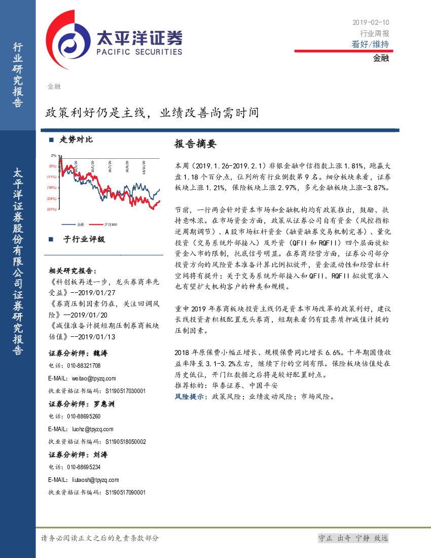 太平洋证券:金融行业周报:政策利好仍是主线,业绩改善尚需时间.pdf