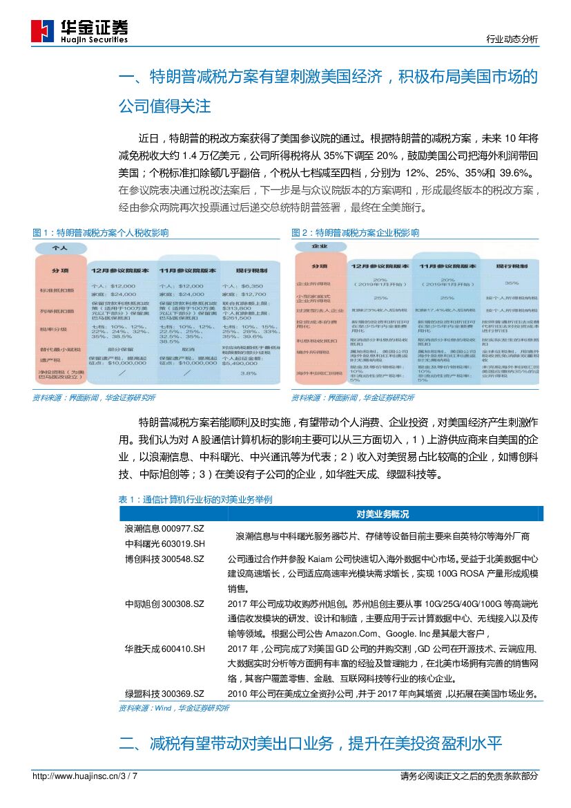 华金证券:通信行业动态分析:特朗普税改方案获参议院通过,信息通信行业相关公司有望受益.pdf