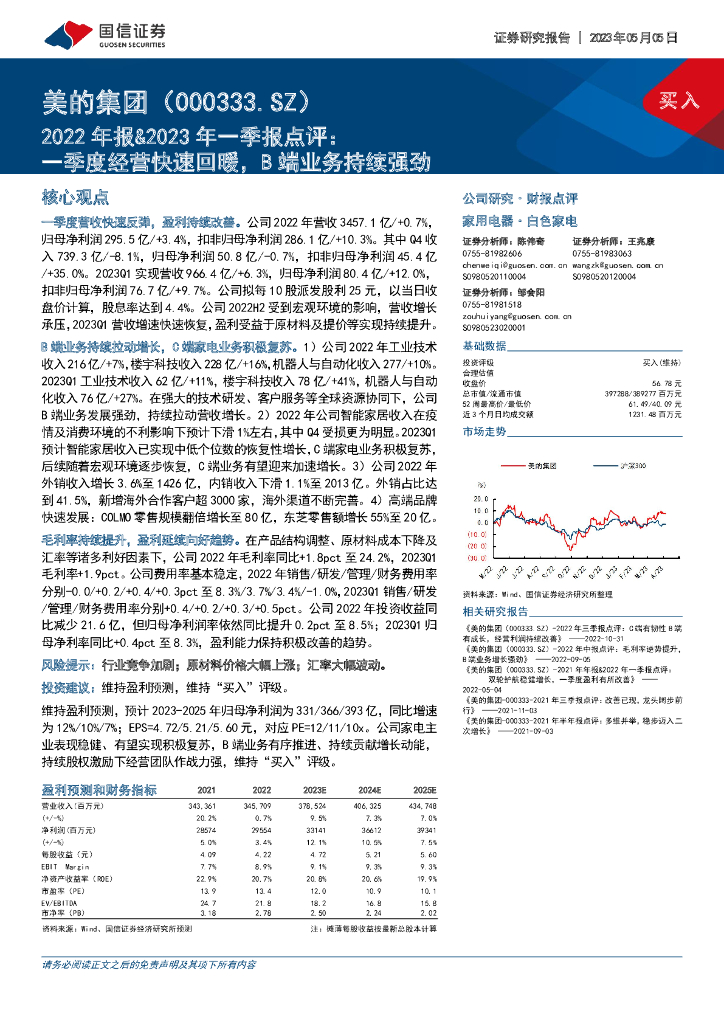 国信证券:美的集团(000333)-2022年报&2023年一季报点评:一季度经营快速回暖,B端业务持续强劲.pdf