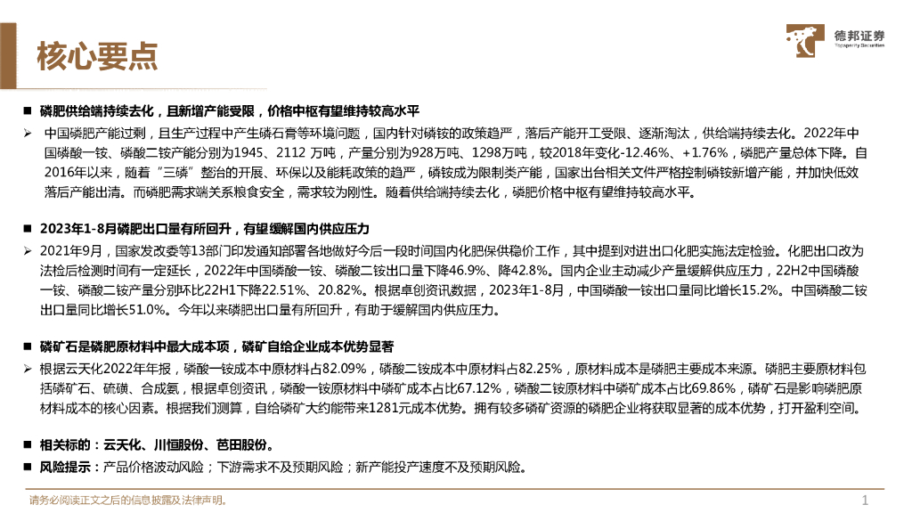 德邦证券:磷化工系列深度:磷肥供给去化抬高价值中枢,磷矿自给企业成本优势显著.pdf