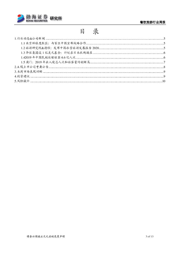 渤海证券:餐饮旅游行业周报:19年民航旅客6.6亿人次 澳门出入境人次创新高.pdf