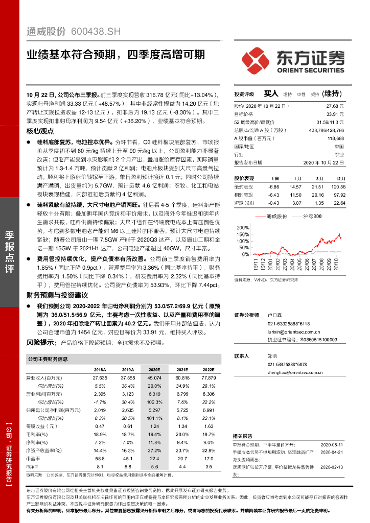 东方证券:通威股份(600438)-业绩基本符合预期,四季度高增可期.pdf