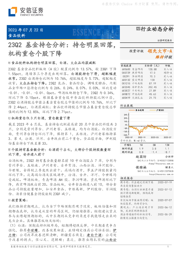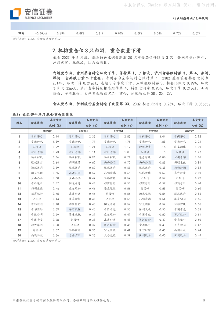 安信证券:食品饮料:23Q2基金持仓分析:持仓明显回落,机构重仓个股下降.pdf