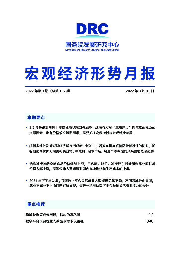 国务院发展研究中心:2022年1-2月宏观经济形势月报.pdf