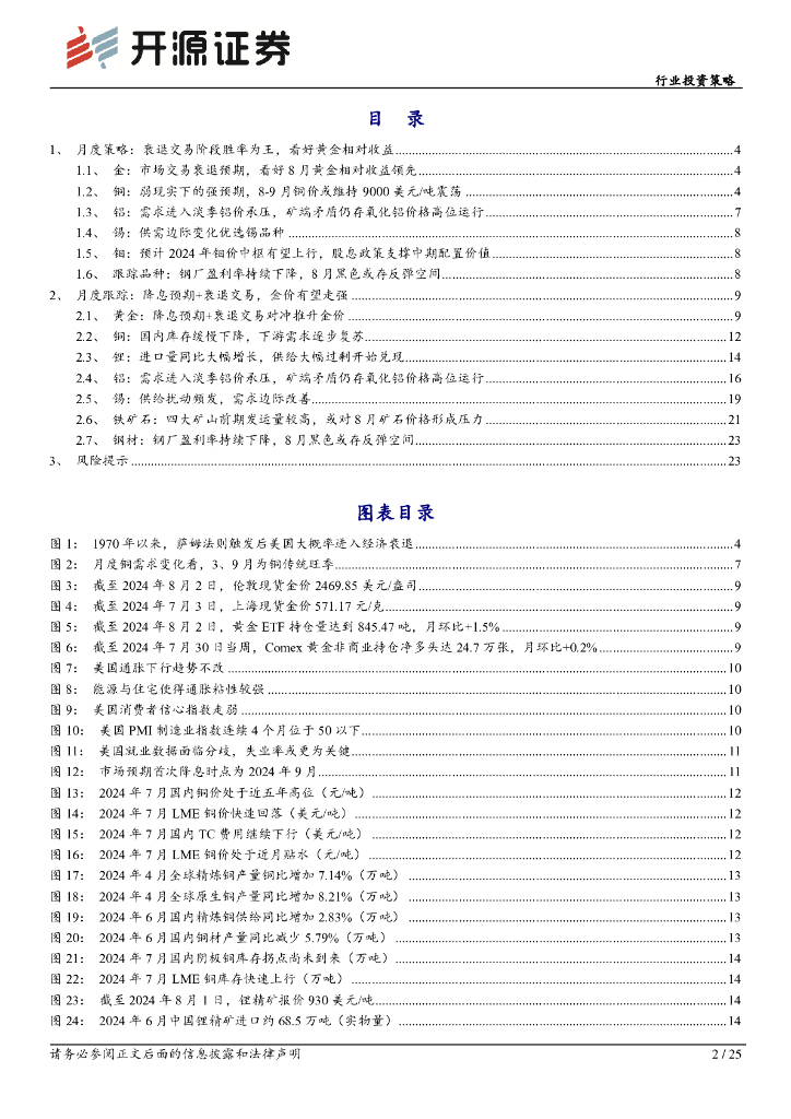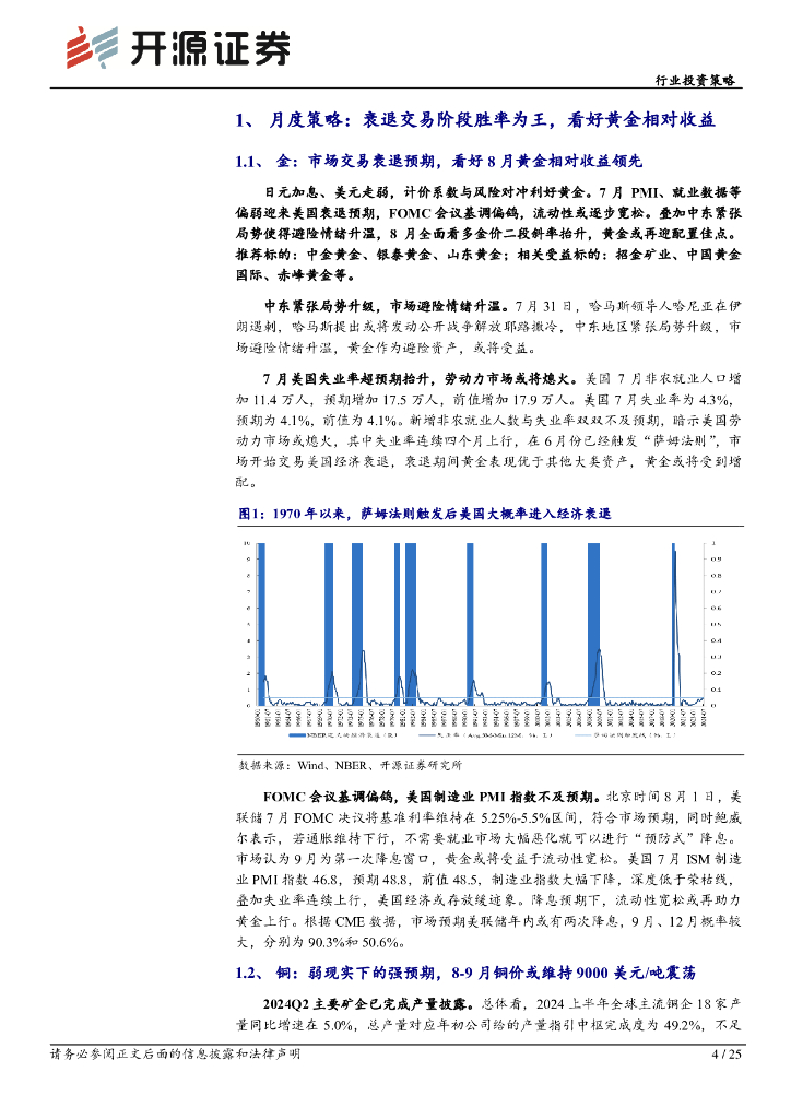 开源证券:有色金属行业投资策略:衰退交易阶段胜率为王,8月看好黄金相对收益领.pdf