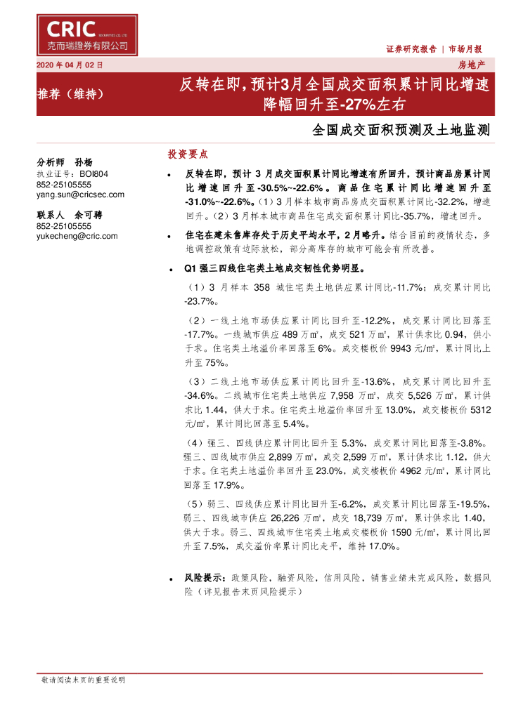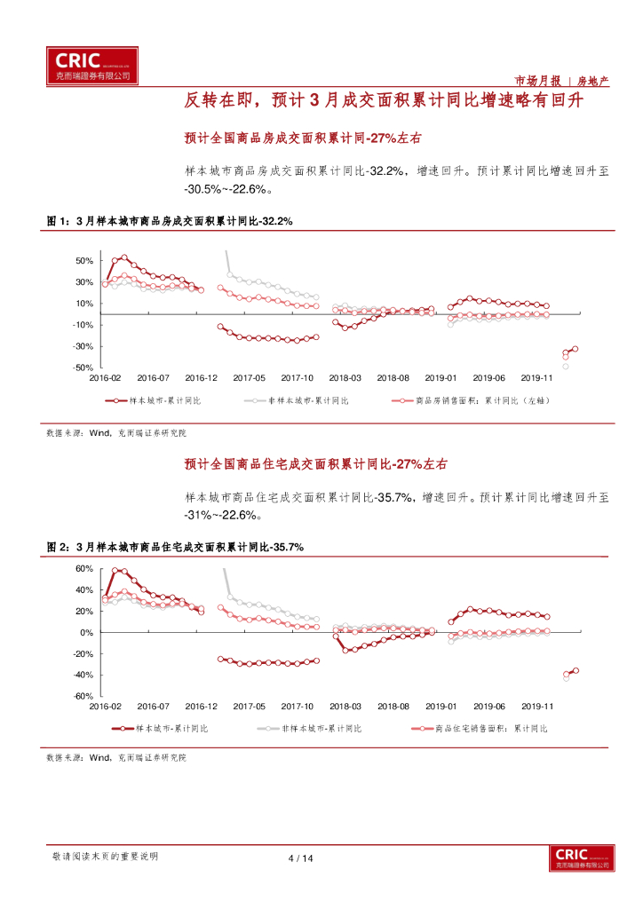 克而瑞证券:全国成交面积预测及土地监测:反转在即,预计3月全国成交面积累计同比增速降幅回升至-27%左右.pdf