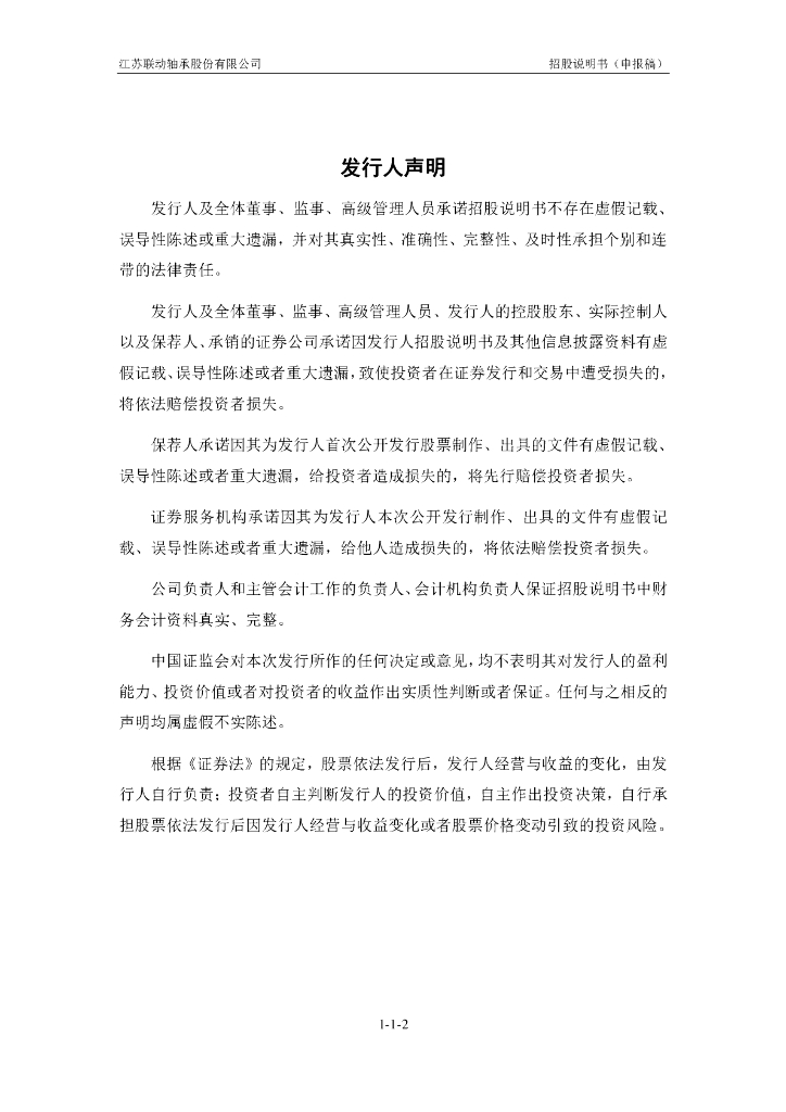 江苏联动轴承股份有限公司深交所创业板IPO上市招股说明书.pdf
