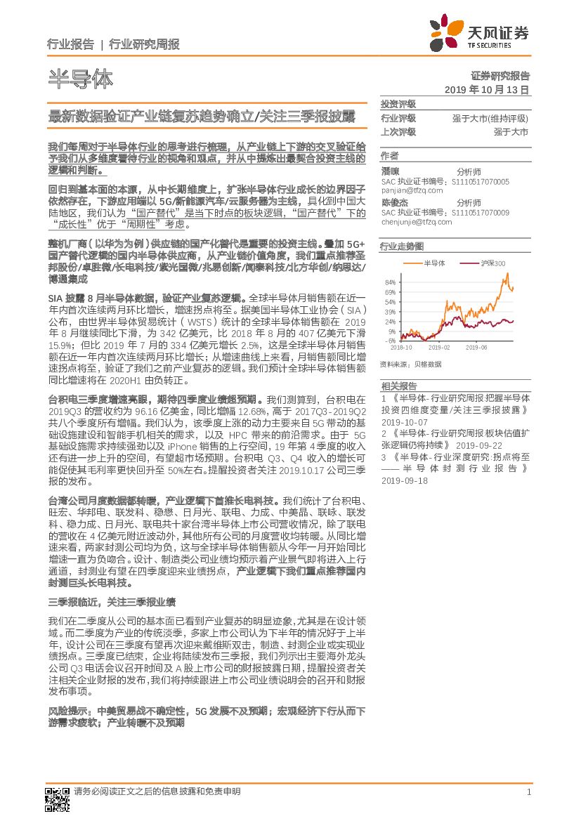 天风证券:半导体行业研究周报:最新数据验证产业链复苏趋势确立/关注三季报披露.pdf