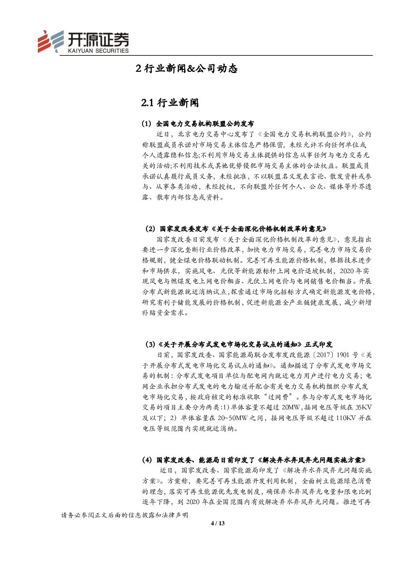 开源证券:电气设备与新能源行业周报:新增煤电市场化竞争 解决“弃风弃光”推进行业发展.pdf