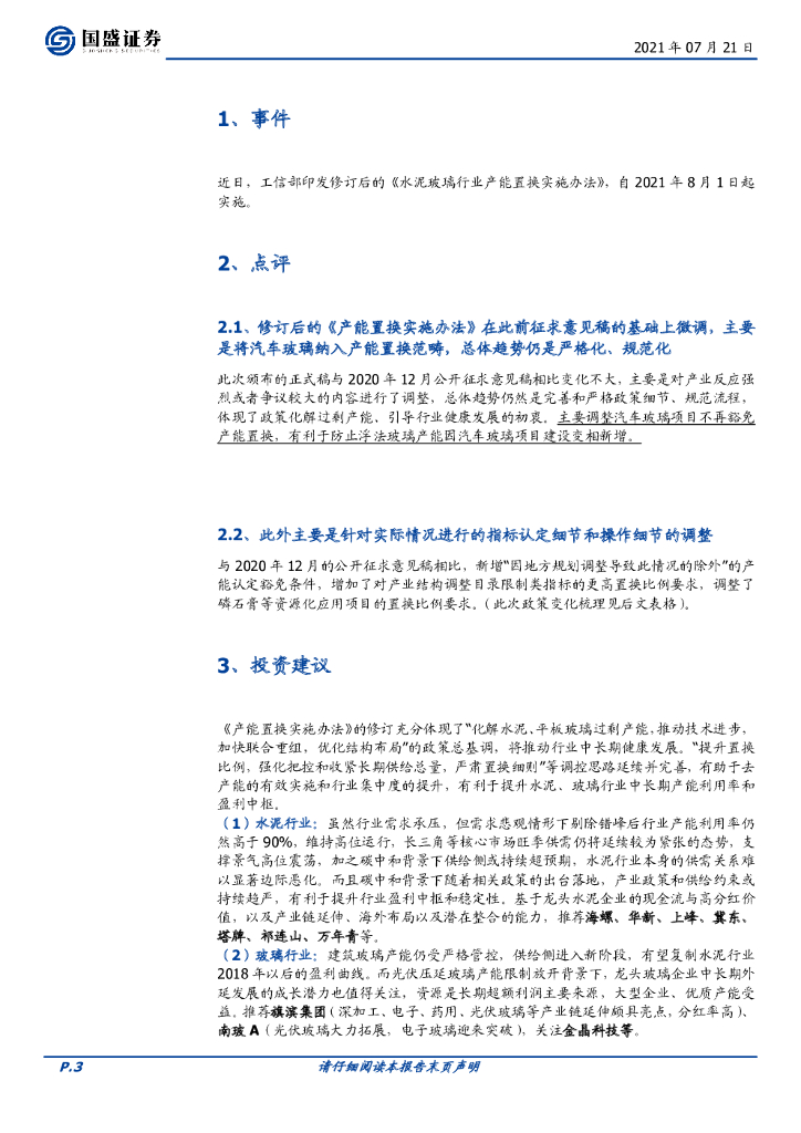 国盛证券:建筑材料行业点评:《产能置换实施办法》修订尘埃落定,延续供给总量把控趋严态势.pdf