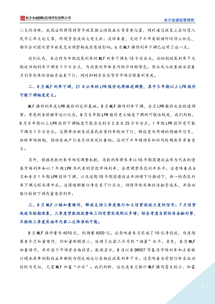 东方金诚:8月政策性降息再次落地,接下来还有可能降准(2023年8月MLF操作解读).pdf