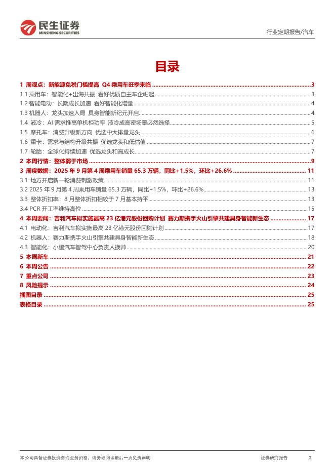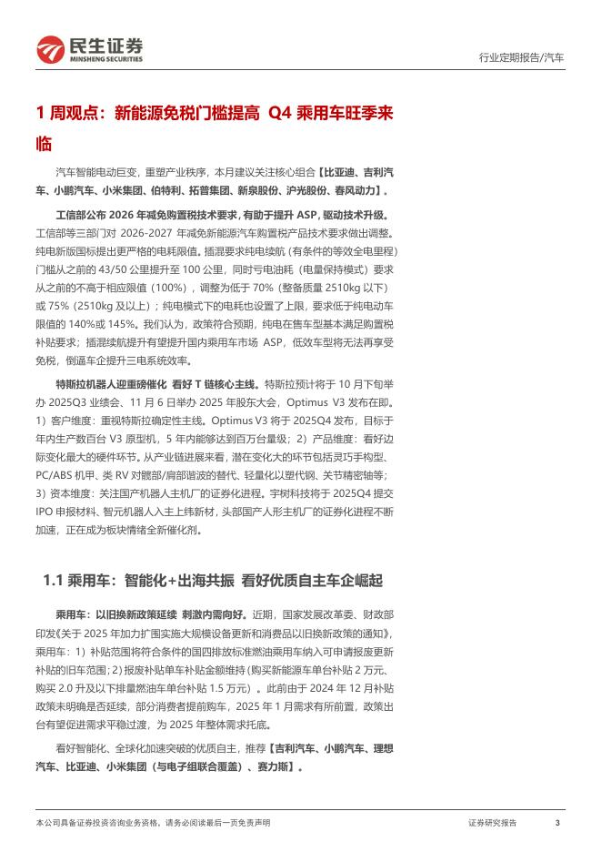 民生证券:汽车和汽车零部件行业周报:新能源免税门槛提高Q4乘用车旺季来临.pdf