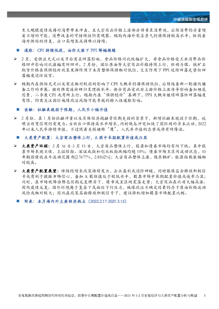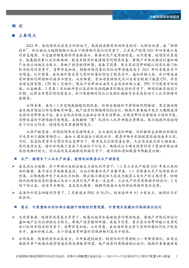 中诚信国际:宏观经济与大类资产配置月报(2022年1-2月):宏观数据改善超预期但可持续性待验证 股票中长期配置价值或凸显.pdf