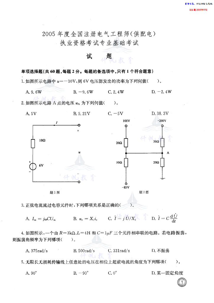 [真题分享]供配电专业知识试卷及答案(05年-17年).pdf