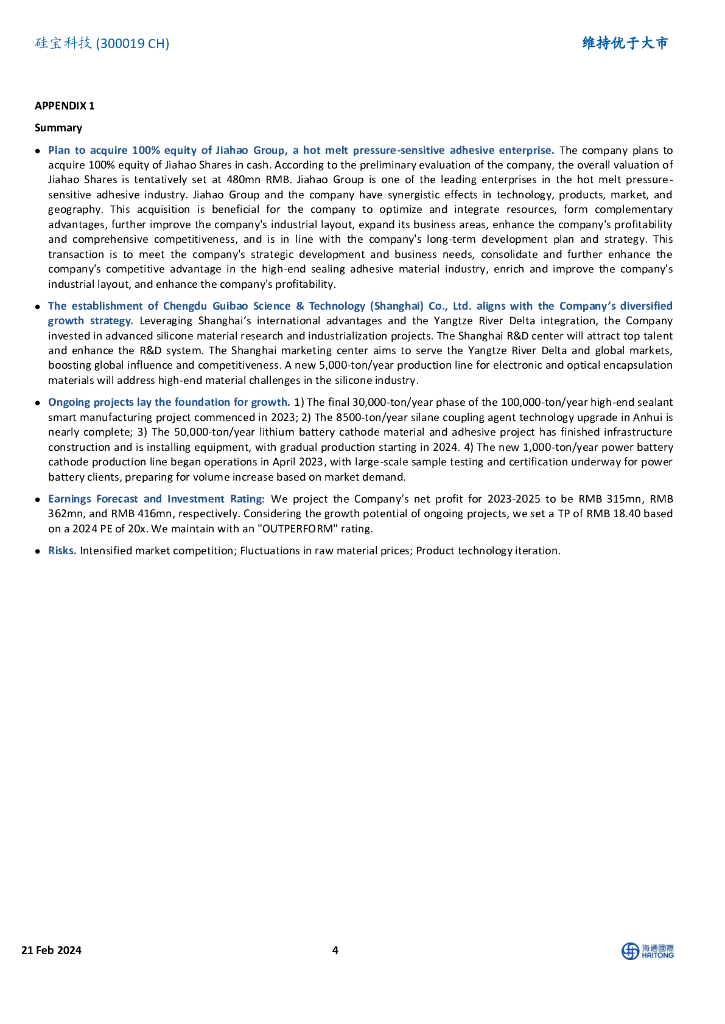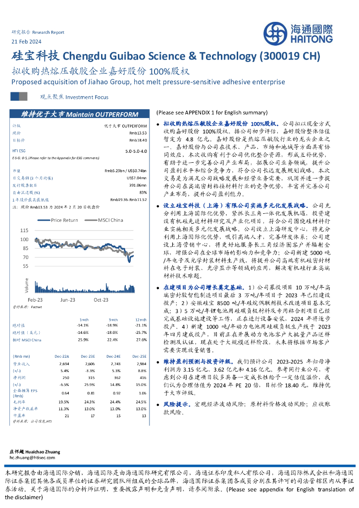 海通国际:硅宝科技(300019)-拟收购热熔压敏胶企业嘉好股份100%股权.pdf