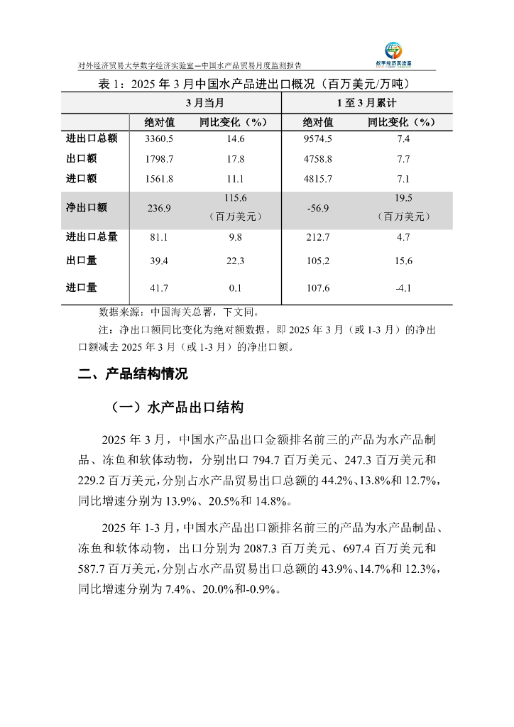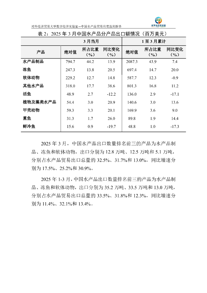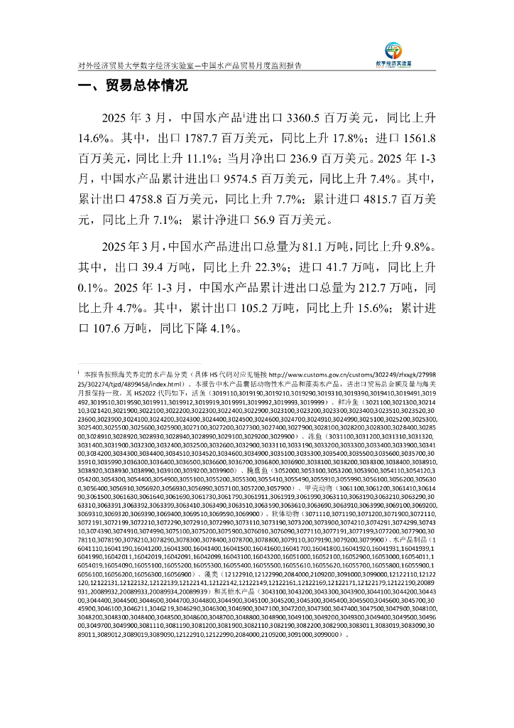 对外经济贸易大学:中国水产品贸易月度监测报告(2025年1-3月).pdf