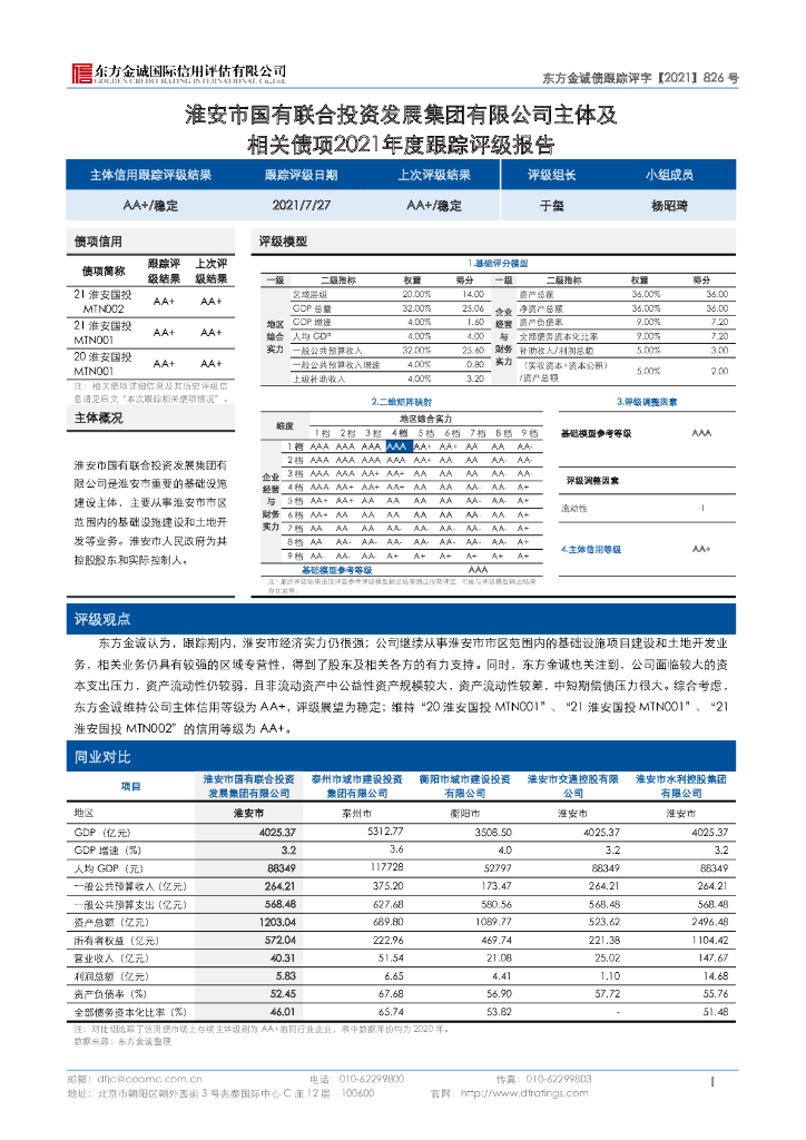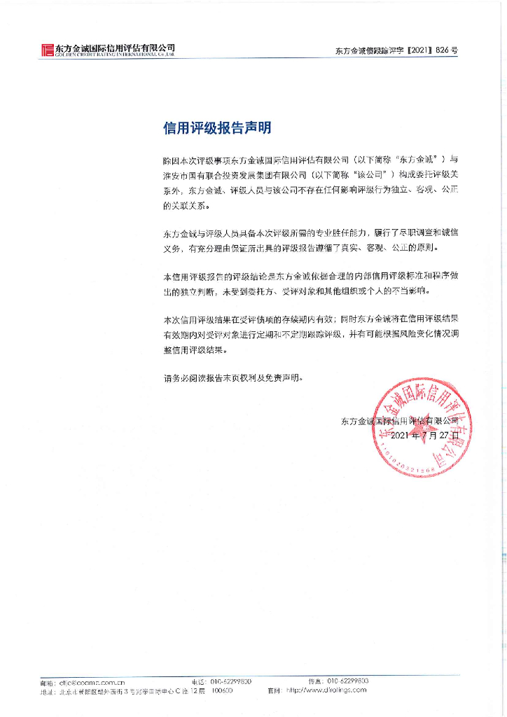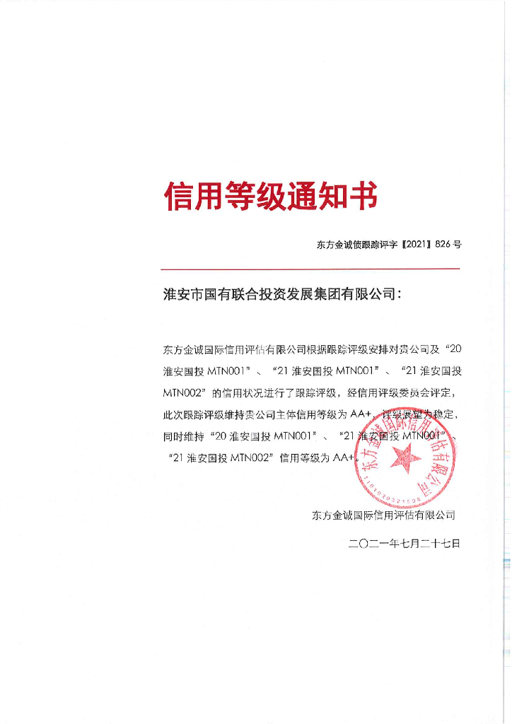 东方金诚:淮安市国有联合投资发展集团有限公司主体及相关债项2021年度跟踪评级报告.pdf