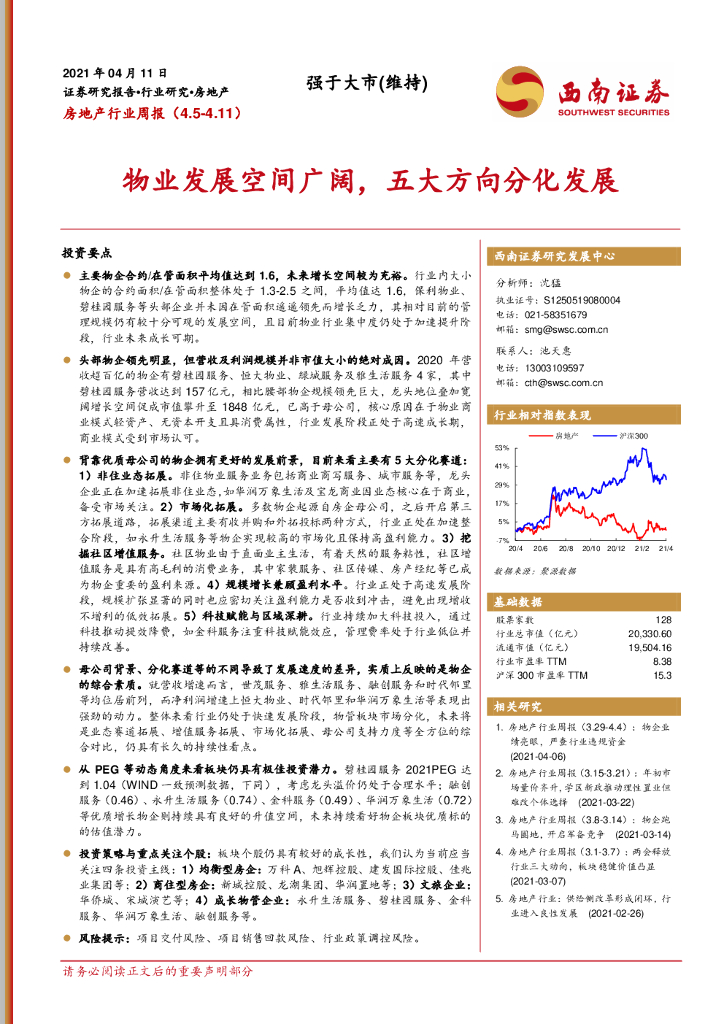 西南证券:房地产行业周报:物业发展空间广阔,五大方向分化发展.pdf