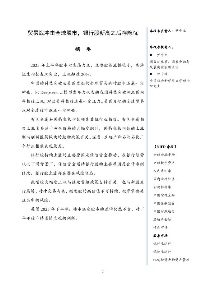 NIFD季报:贸易战冲击全球股市,银行股新高之后存隐忧——2025年Q2股票市场.pdf