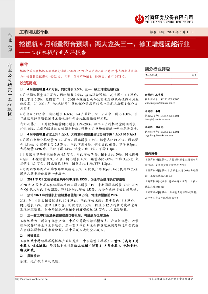 浙商证券:工程机械行业点评报告:挖掘机4月销量符合预期;两大龙头三一、徐工增速远超行业.pdf
