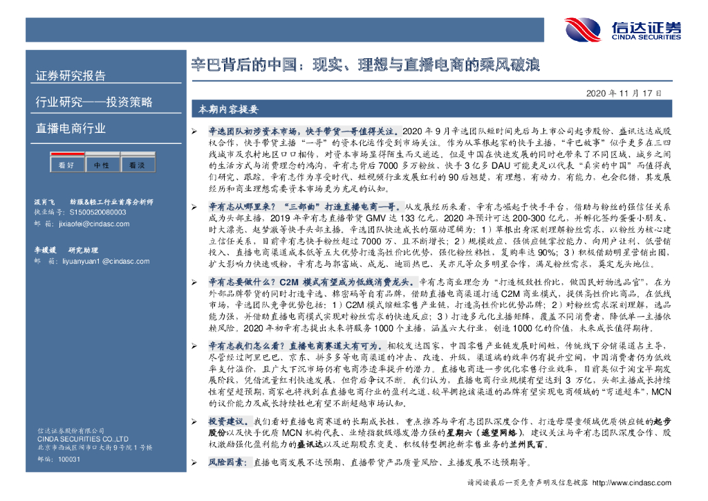 信达证券:直播电商行业专题研究报告:辛巴背后的中国:现实、理想与直播电商的乘风破浪.pdf