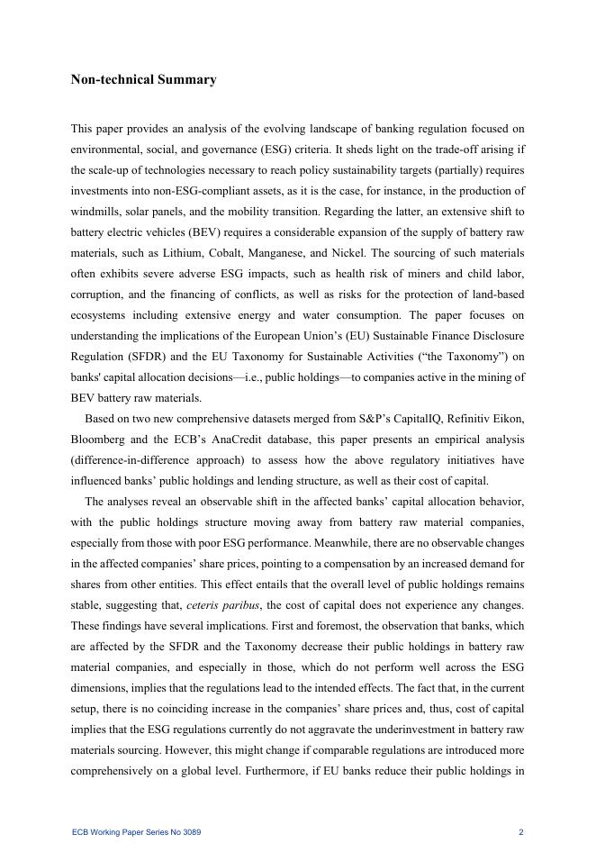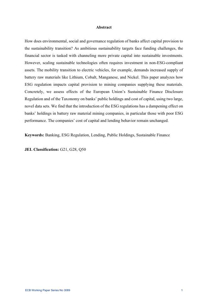 欧洲央行:ESG银行监管对新可持续技术融资的影响(英文版).pdf