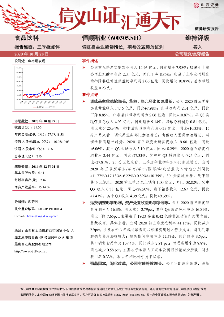 山西证券:恒顺醋业(600305)-调味品主业稳健增长,期待改革释放红利.pdf