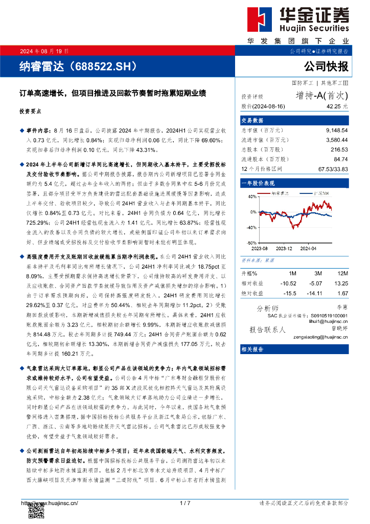 华金证券:纳睿雷达(688522)-订单高速增长,但项目推进及回款节奏暂时拖累短期业绩.pdf