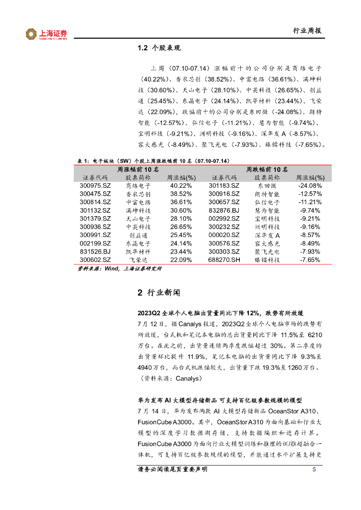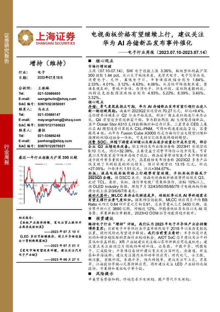 上海证券:电子行业周报:电视面板价格有望继续上行,建议关注华为AI存储新品发布事件催化.pdf