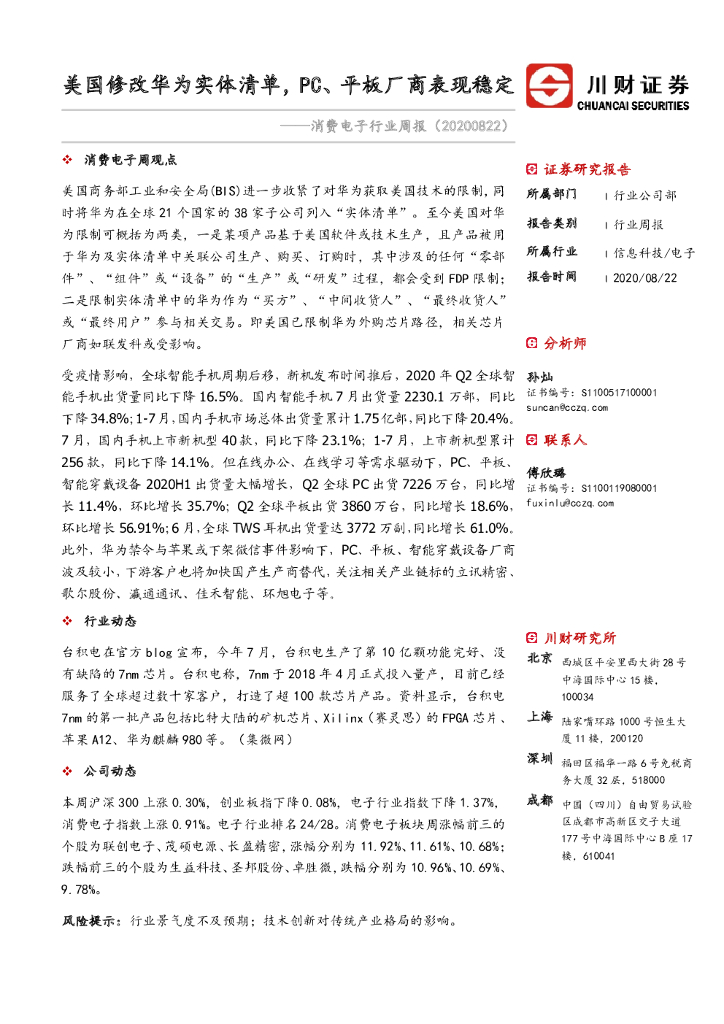 川财证券:消费电子行业周报:美国修改华为实体清单,PC、平板厂商表现稳定.pdf