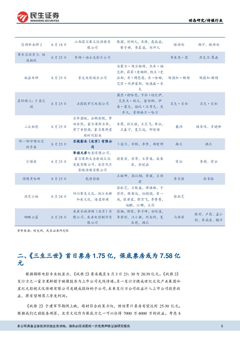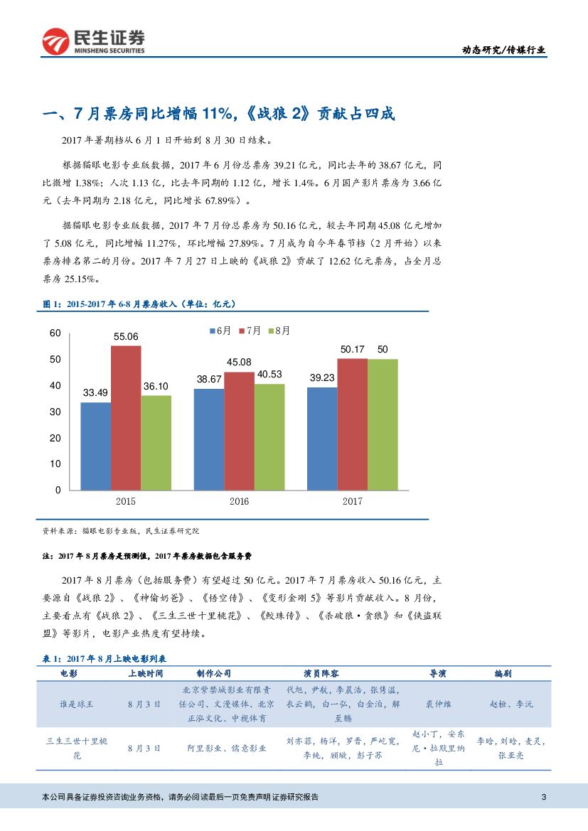 民生证券:传媒行业17年暑期档电影票房前瞻:《三生三世》首日票房达1.75亿,关注影视板块机会.pdf