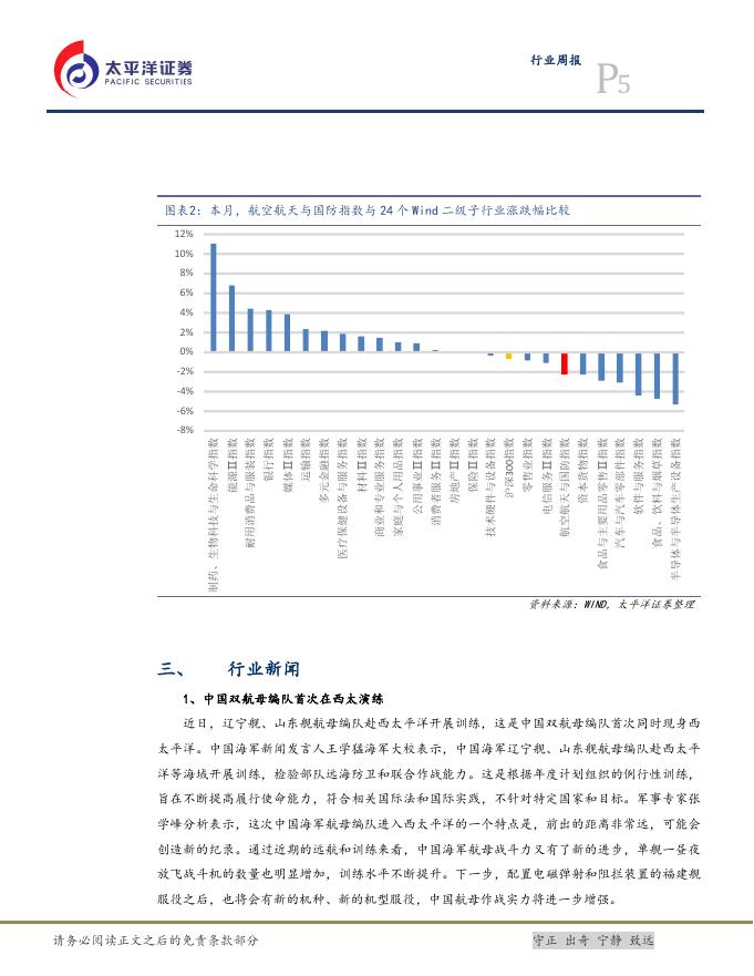 太平洋证券:军工行业周报:中国双航母编队首次在西太演练.pdf