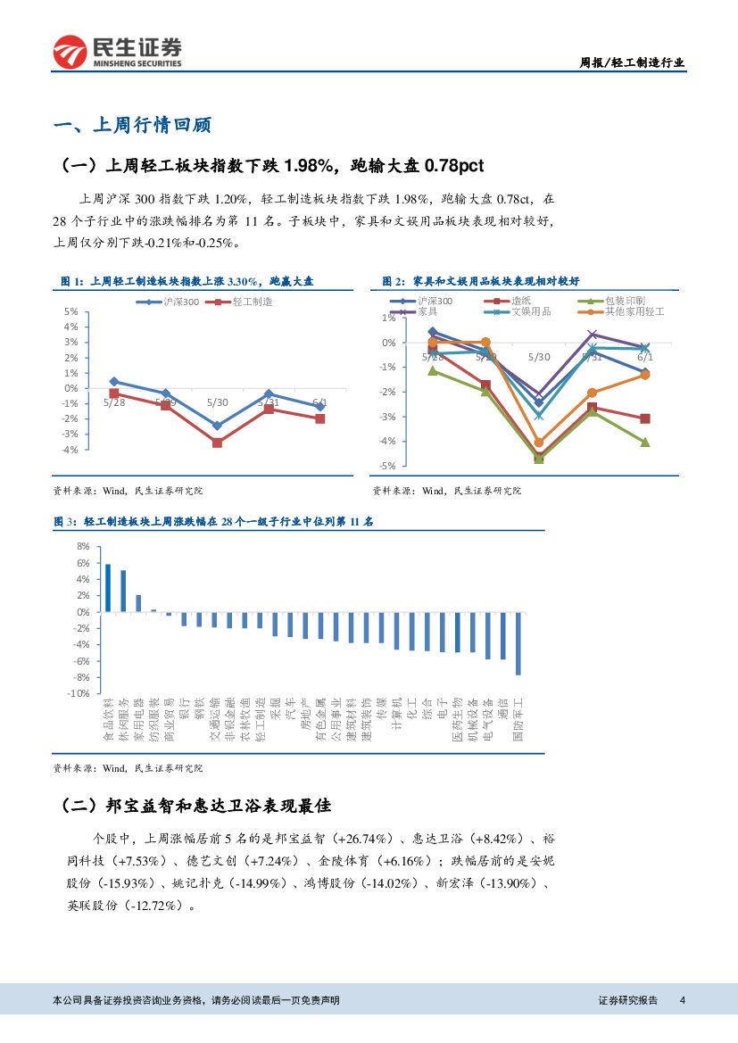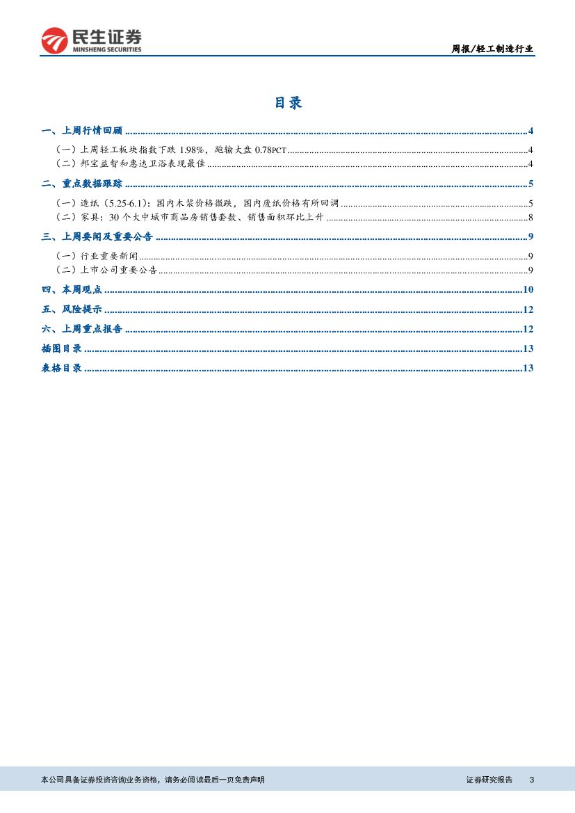 民生证券:轻工制造行业周报 :1-4月造纸和纸制品业营收同比增长13.2%,国内木浆价格微跌.pdf