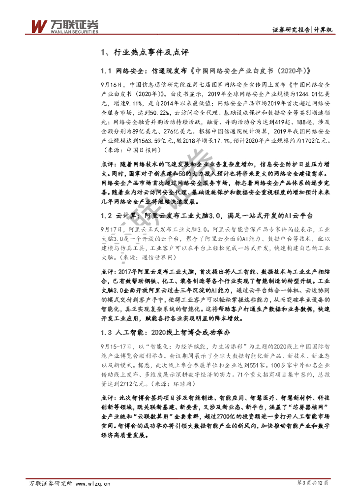 万联证券:计算机行业周观点:阿里发布工业大脑3.0,国家网络安全宣传周举办.pdf