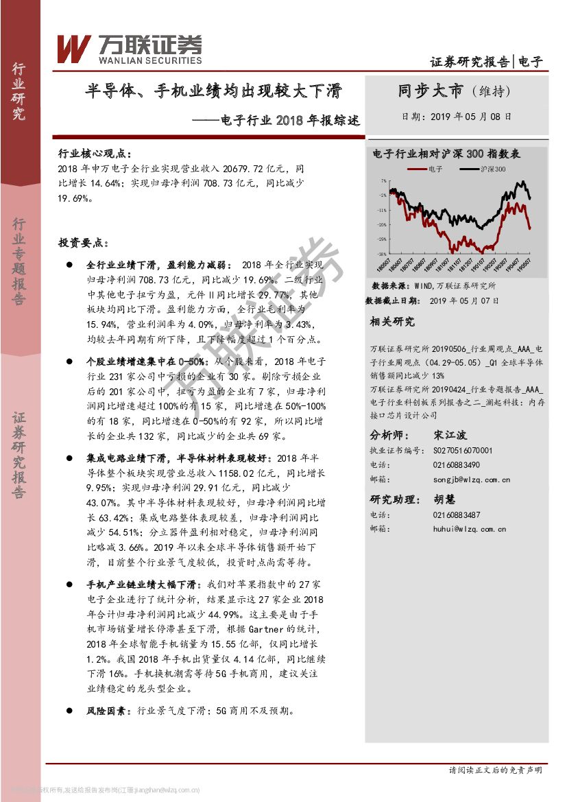 万联证券:电子行业2018年报综述:半导体、手机业绩均出现较大下滑.pdf