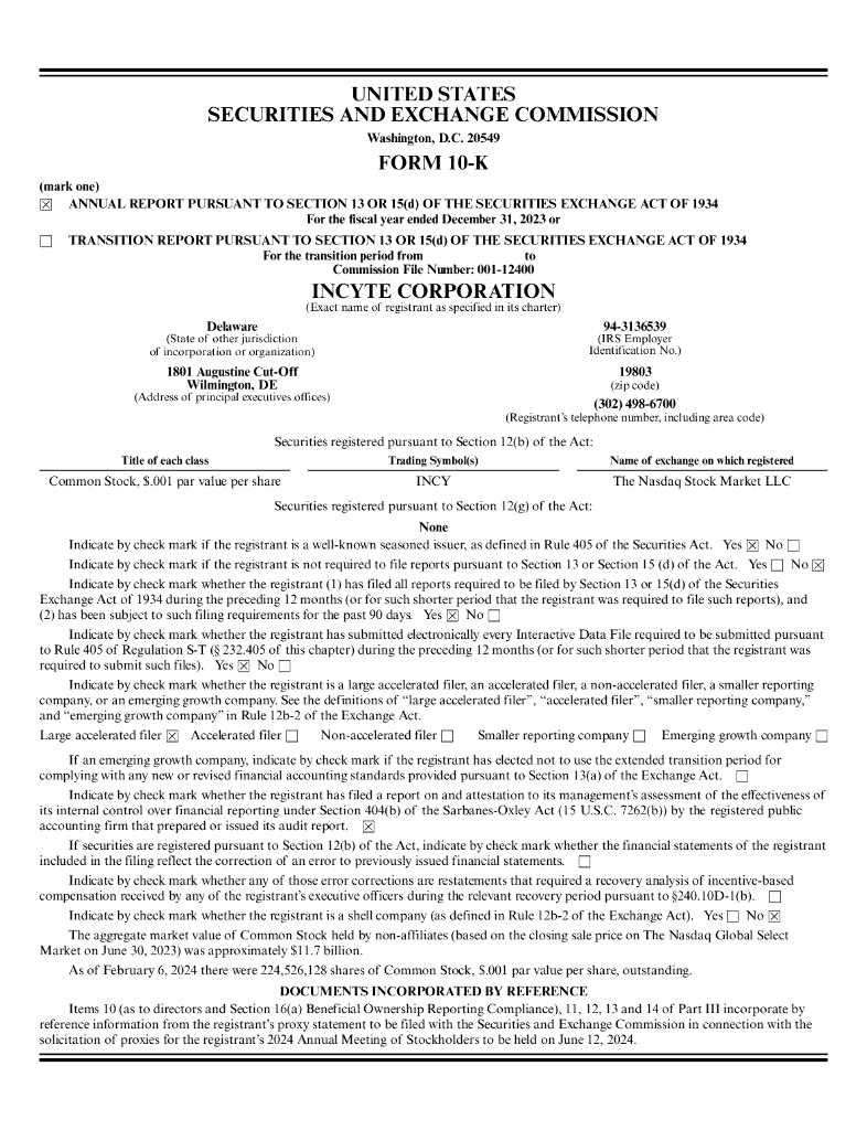 Incyte Corporation(INCY)2023财年年度报告(英文版).pdf