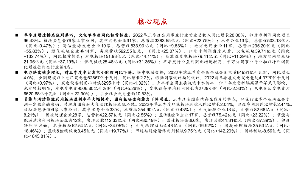 中泰证券:环保与公用事业2022三季报总结:火电业绩持续改善,疫情反复环保承压.pdf
