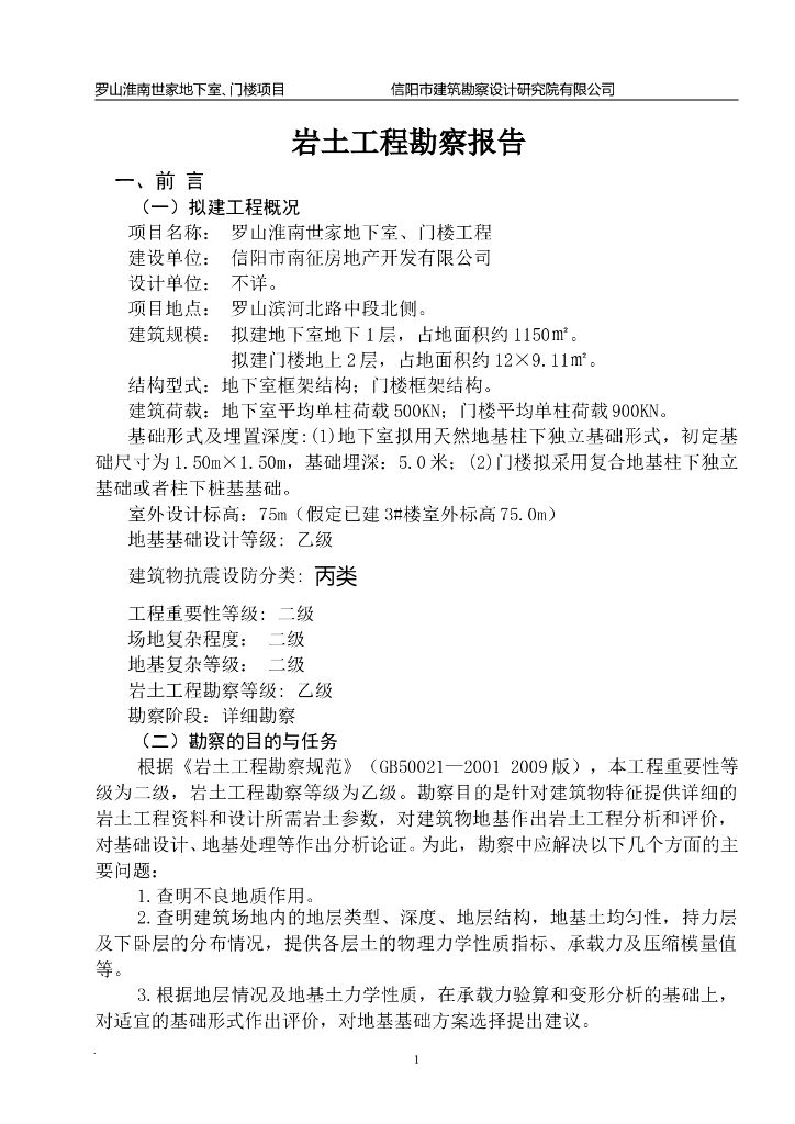 两层门楼及框架结构地下室岩土工程勘察报告.doc